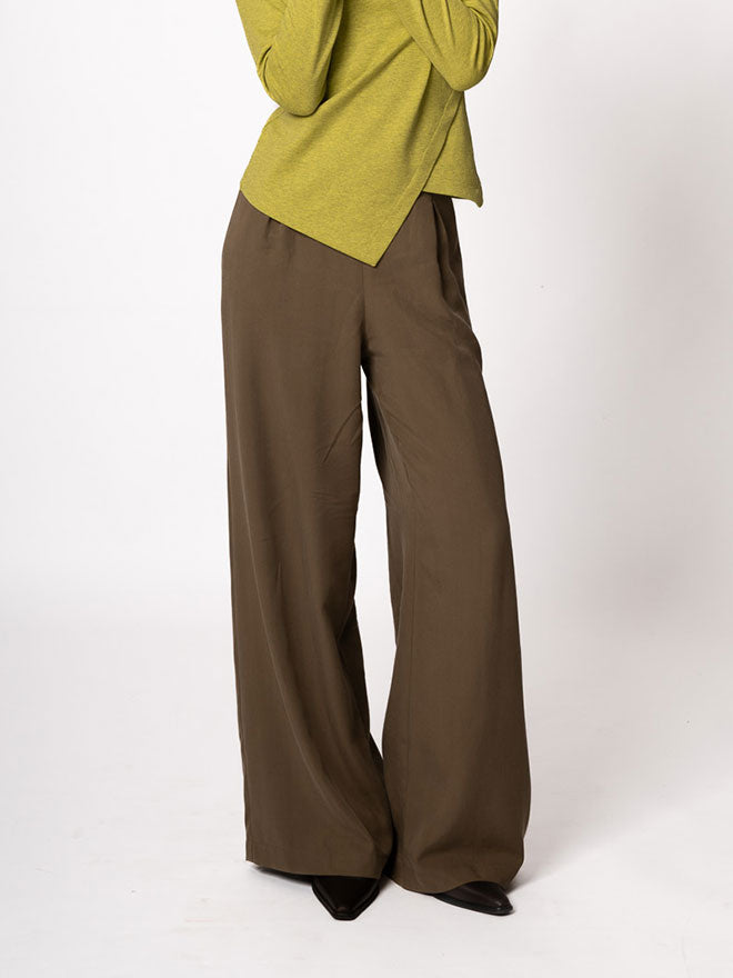 These trousers are a relaxed option, the elastic waist and wide cut make them a must-have for summer in the city or at the beach and sea. The hidden pockets in the side seam flatter the figure. Wear them casually with sneakers, cool with cowboy boots or elegantly with ballerina flats - the soft material with minimal shine falls wonderfully flowing and is also cool and breathable thanks to TENCEL™. Matches: T-Shirt EHMI